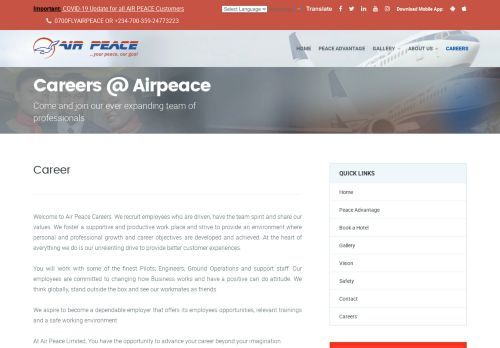 Career. Welcome to Air Peace Careers. We recruit employees who are driven, have the team spirit and share our values. We foster a supportive and productive ...