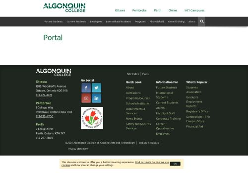 Portal. Ottawa 1385 Woodroffe Avenue Ottawa, Ontario K2G 1V8 613-727-4723. Pembroke 1 College Way Pembroke, Ontario K8A 0C8 613-735-4700. Perth