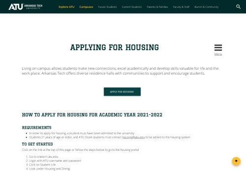Applying for housing for the first time? Get in touch with the Department of Residence Life to be added to the housing system. Contact us at 479-968-0376 or ...