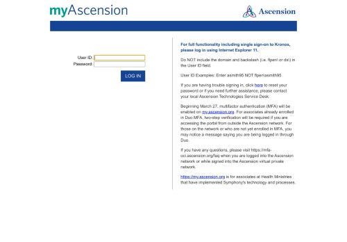... my.ascension.org. For associates already enrolled in Duo MFA, two-step verification will be required if you are accessing the portal from outside the Ascension ...