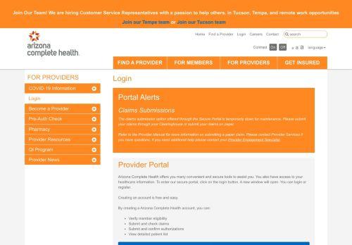 Provider Portal. Arizona Complete Health offers you many convenient and secure tools to assist you. You also have access to your healthcare information.