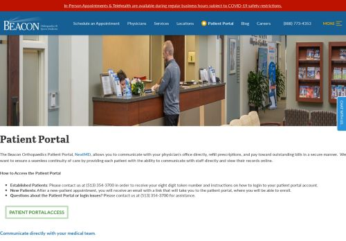 Patient Portal. The Beacon Orthopaedics Patient Portal, NextMD, allows you to communicate with your physician's office directly, refill prescriptions, and pay ...