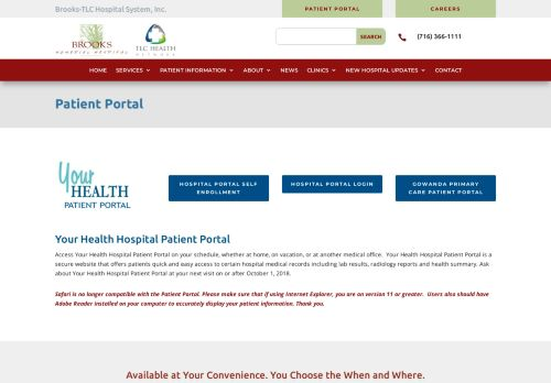 To access the “Your Health” Hospital Patient Portal log on to the Brooks or TLC homepage. Look for the “Your Health” icon link at the top of the page and click on it ...