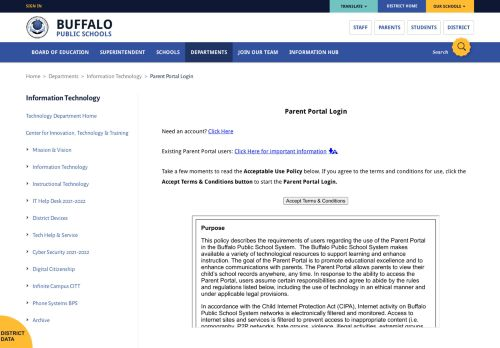 Purpose. This policy describes the requirements of users regarding the use of the Parent Portal in the Buffalo Public School System.