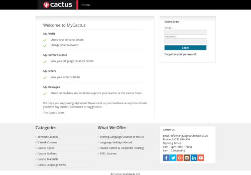 MyCactus online: our platform for Cactus evening language students. Find out how MyCactus ... Find links to our website, social media and booking page ...