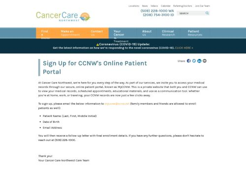 At Cancer Care Northwest, we're here for you every step of the way. As part of our services, we invite you to access your medical records through our secure, ...