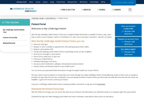 With the My LifeBridge Health Patient Portal, you can: View your vital signs; Request or direct schedule an appointment with participating providers online ...