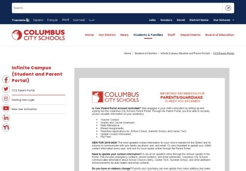Welcome to the Infinite Campus Parent Portal. Below you will find useful information to access real-time information on your Columbus City Schools ...