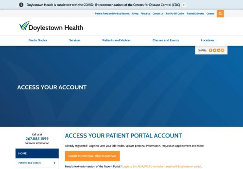 The most updated results for the Doylestown Hospital Patient Portal page are listed below, along with availability status, top pages, social media links, Check the official login link, follow troubleshooting steps, or share your problem detail in the comments section.