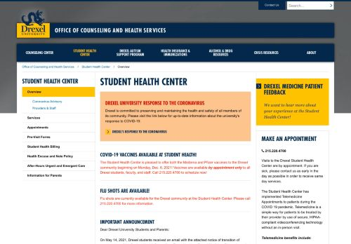 The Drexel Student Health Center is staffed with faculty physicians and nurse ... student access to the medical record through the EPIC portal MyChart, ...