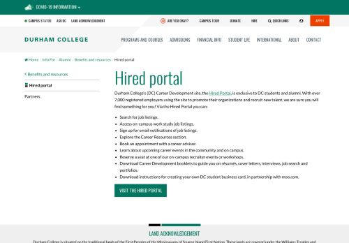 Durham College's (DC) Career Development site, the Hired Portal, is exclusive to DC students and alumni. With over 7,000 registered employers using the site ...