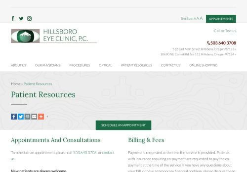 Hillsboro Eye Clinic Patient Resources - Our practice serves Hillsboro OR, Beaverton OR and surrounding areas.