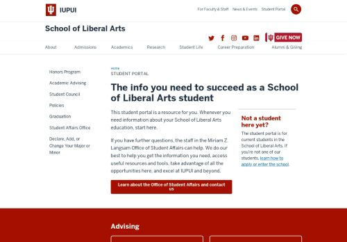 This student portal is a resource for you. Whenever you need information about your School of Liberal Arts education, start here.