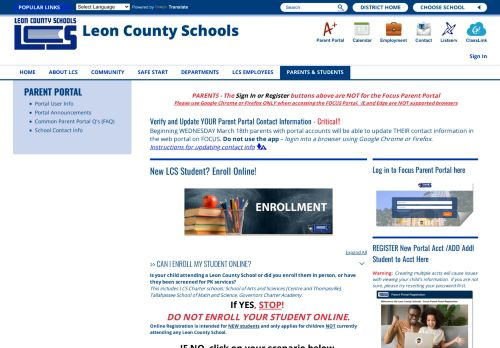 The Focus Leon County Schools Parent Portal is a tool designed to enhance communication and involvement for you in your child's education. This portal will ...