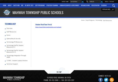 Mahwah Township Public Schools. Popular Links. Student Realtime Portal · Parent Realtime Portal · Naviance · PaySchools Central · Staff Directory ...