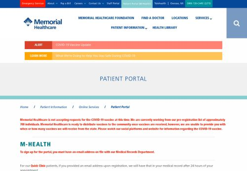 M-HEALTH. To sign up for the portal, you must have an email address on file with our Medical Records Department. For COVID-19 test results: Using the patient ...