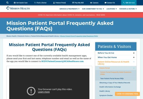 Mission Patient Portal Frequently Asked Questions (FAQs). If you would like to connect one of the currently available health management apps, please send ...