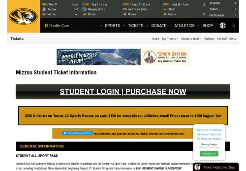 Student Login | purchase now 2020 U-Centre on Turner All-Sports ... for reminders and updates on Mizzou ticket information and promotions.