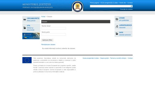 Cautare dosare in instantele de judecata din Romania: tribunale, judecatorii, curti de ... Informațiile sunt oferite de portal.just.ro și conțin toate dosarele din ...