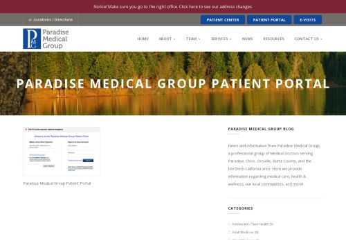 Paradise Medical Group Patient Portal ... News and information from Paradise Medical Group, a professional group of Medical Doctors serving Paradise, Chico, ...
