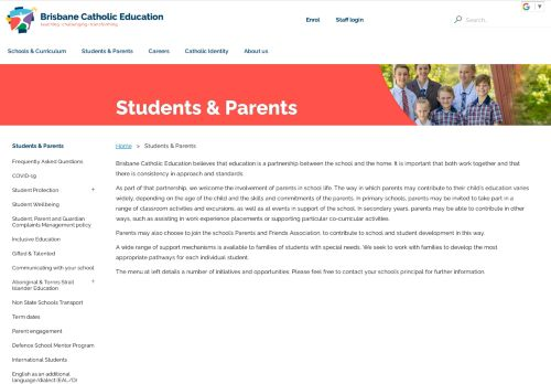 Students & Parents · Brisbane Catholic Education believes that education is a partnership between the school and the home. · As part of that partnership, we ...