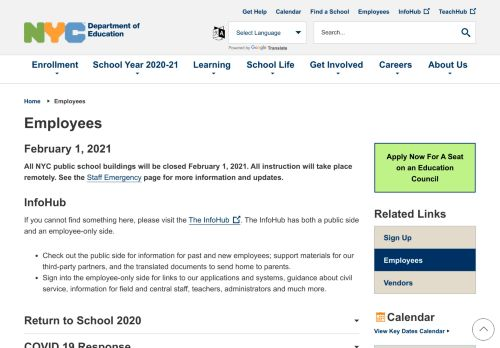 Contact the NYC Department of Education · NYC DOE Employees · Statement on Accessibility · Related Links.
