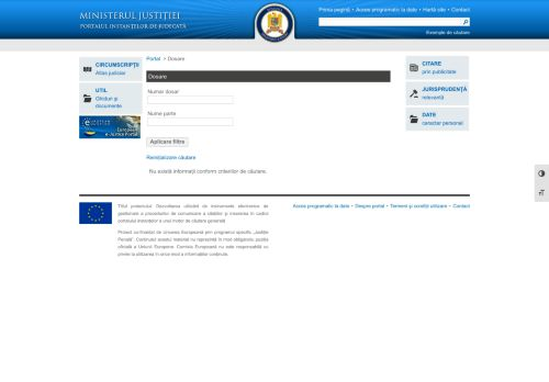 In acest portal ai functie de cautare dosar aflat in instanta (baza ECRIS - portal.just.ro). Introdu numarul dosarului sau numele unei parti implicate in ...