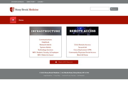 SYSTEM OUTAGES; DIRECTORY ». All Stony Brook Employees · Stony Brook Medicine · Southampton · HR Directory · Paging / On-Call System. LOGINS ».