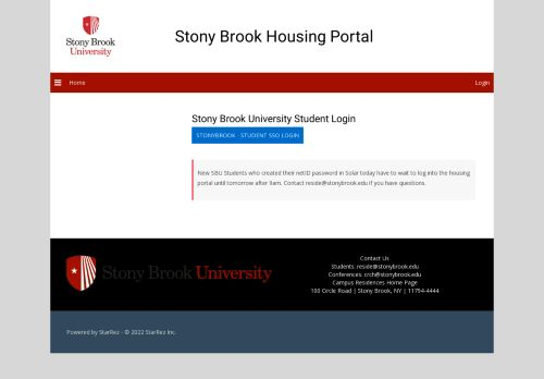 SBU Student Log In Important Notice. Do not use the Conference Housing Login. Click on the CAS SSO Provider Button to log in underneath the "Stony Brook ...