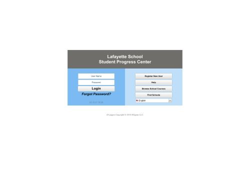 Lafourche School Student Progress Center. Forgot Password? 12.01.20 08:30. Login. English. Register New User. Help. All pages Copyright © 2019 EDgear ...