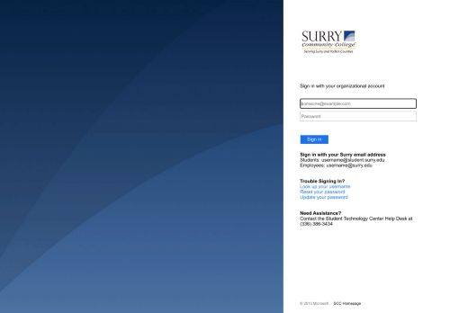 Sign in with your Surry email address. Students: username@student.surry.edu. Employees: username@surry.edu. Trouble Signing In? Look up your username.