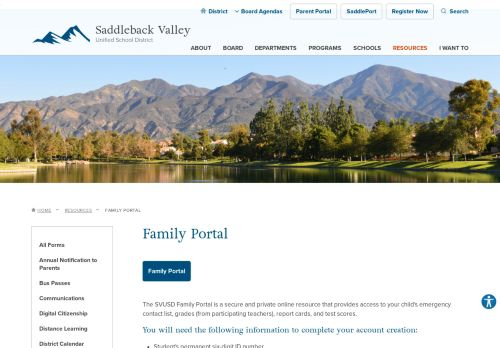 The SVUSD Family Portal is a secure and private online resource that provides access to your child's emergency contact list, grades (from participating teachers) ...