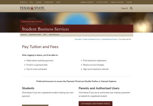 The best matching results for Texas State Student Payment Portal are listed below, along with top pages, current status, and comments. If you are facing any issues, please write detail in the comments section for the solution.