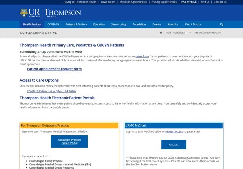 Sign in to your Thompson Medical Practice portal below. Outpatient Practice Patient Portal. If you are a patient of: Canandaigua Family Practice; Canandaigua ...
