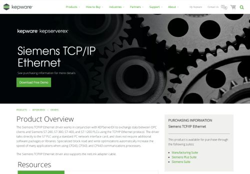 The Siemens TCP/IP Ethernet driver for KEPServerEX exchanges data between OPC clients and Siemens PLCs ... Download Free Demo ... from TIA Portal for S7-300, S7-400, S7-1200, and S7-1500 devices via the TIA Portal Exporter Utility ...