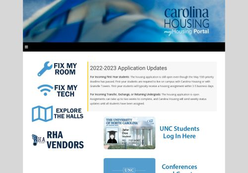 Welcome to Home ... As the official on-campus student housing department at UNC-Chapel Hill, Carolina Housing works to provide convenient housing that is safe, ...