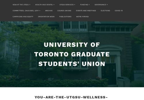 ... ELECTIONS · COVID-19 · OUR CAMPAIGNS · Orientation Week · University of Toronto Graduate Students' Union. you-are-the-utgsu-wellness-portal-visual ...
