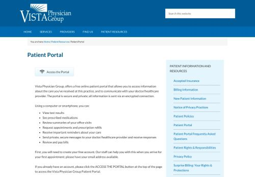 Vista Physician Group offers a free online patient portal that allows you to access information about the care you've received at this practice.
