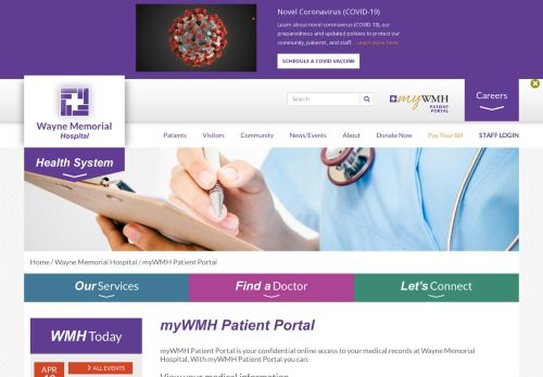 myWMH Patient Portal is your confidential online access to your medical records at Wayne Memorial Hospital.
